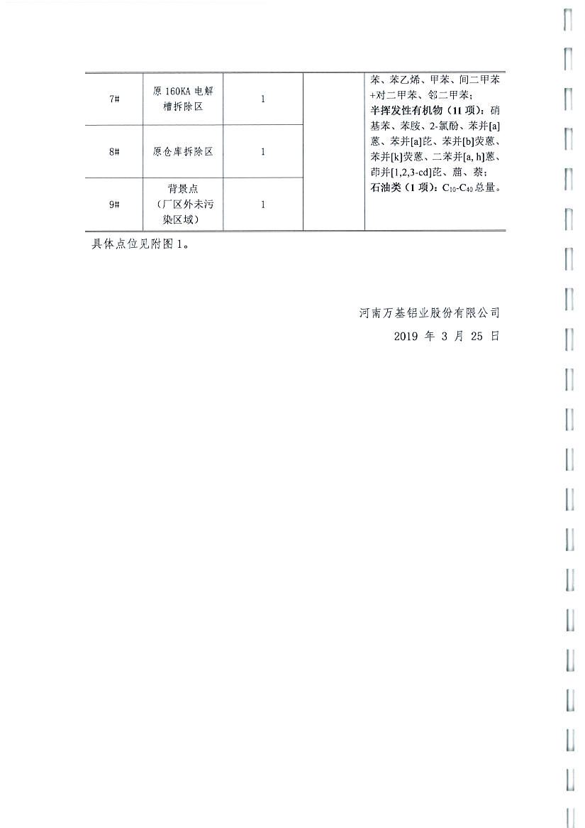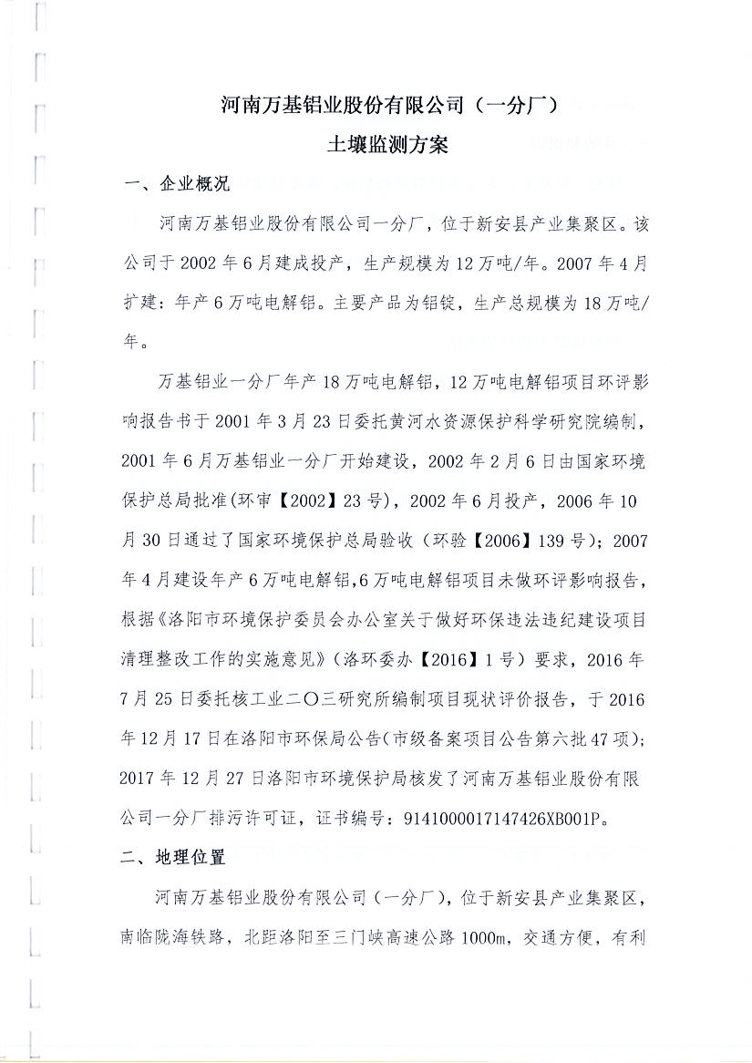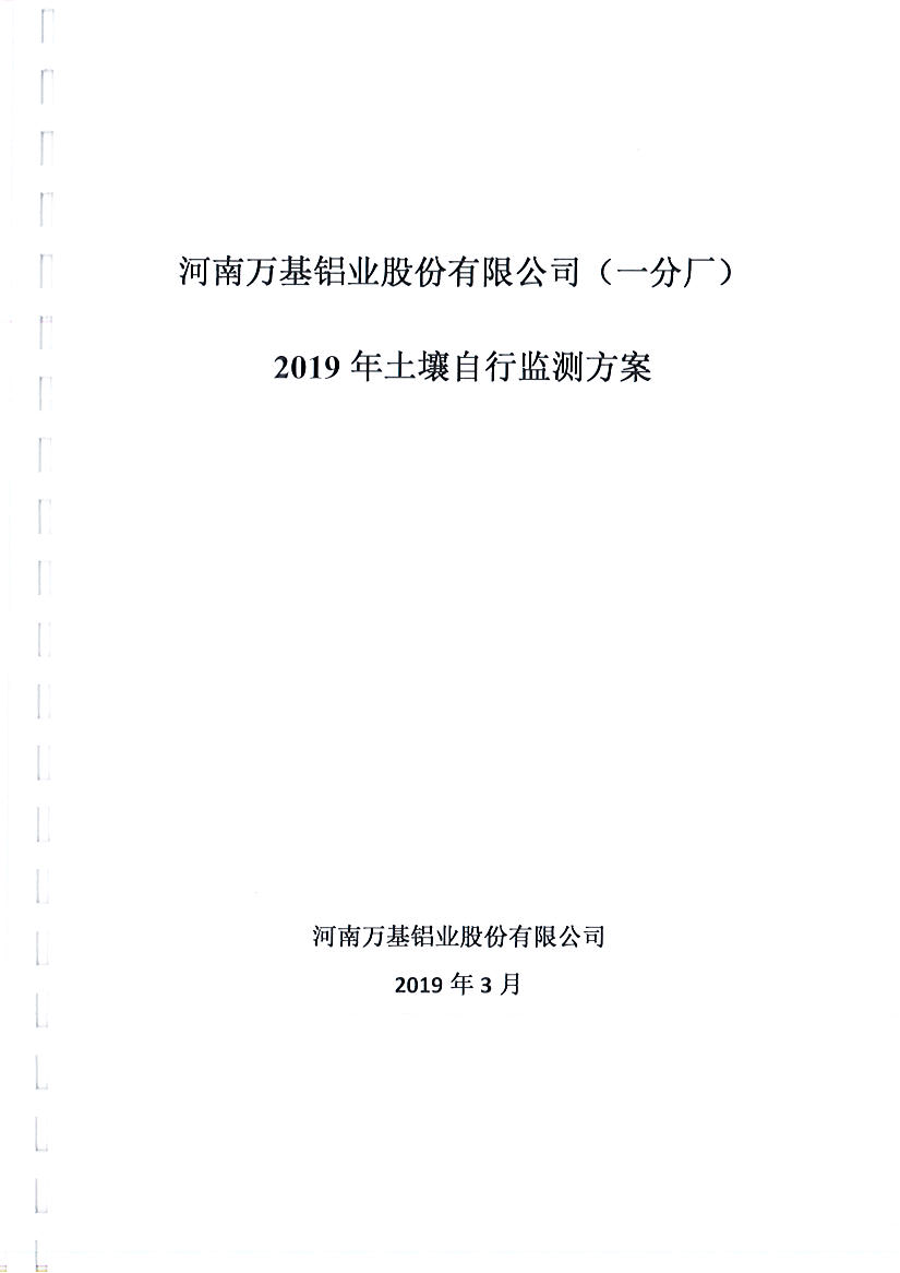 河南萬基鋁業(yè)股份有限公司(一分廠)2019土壤自行檢測方案