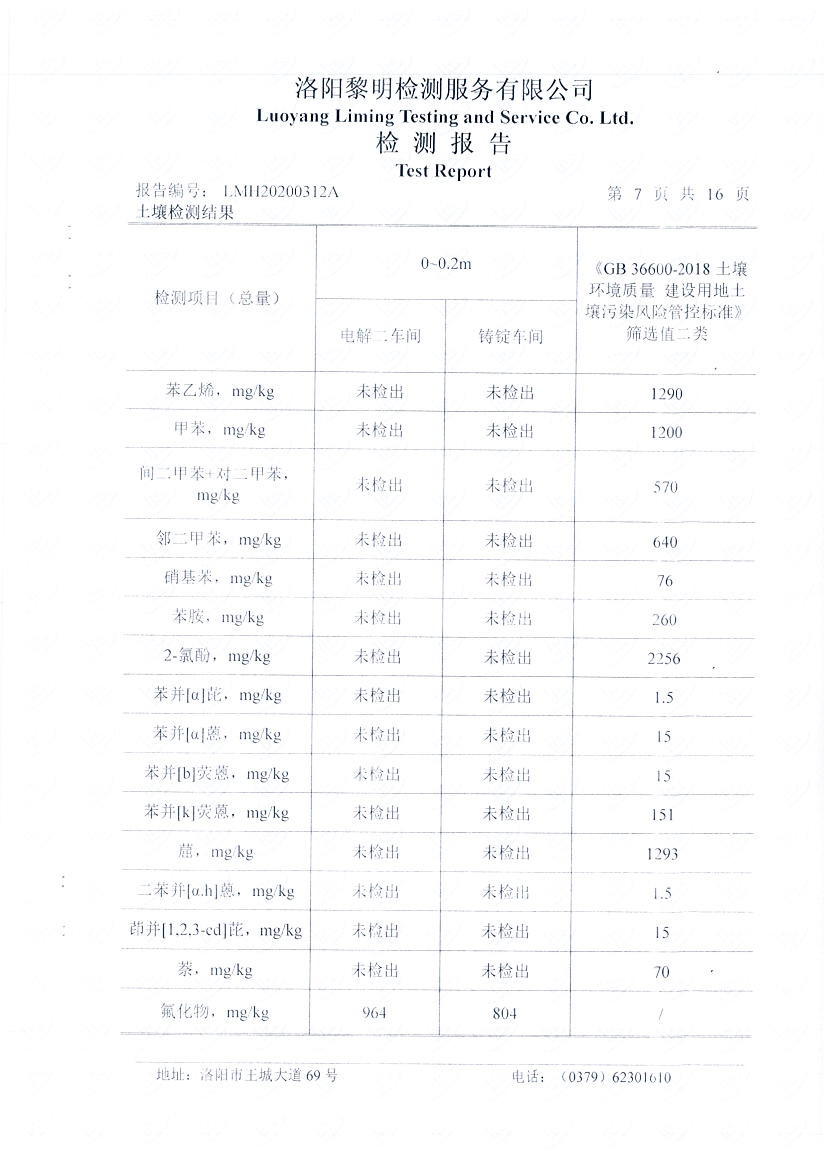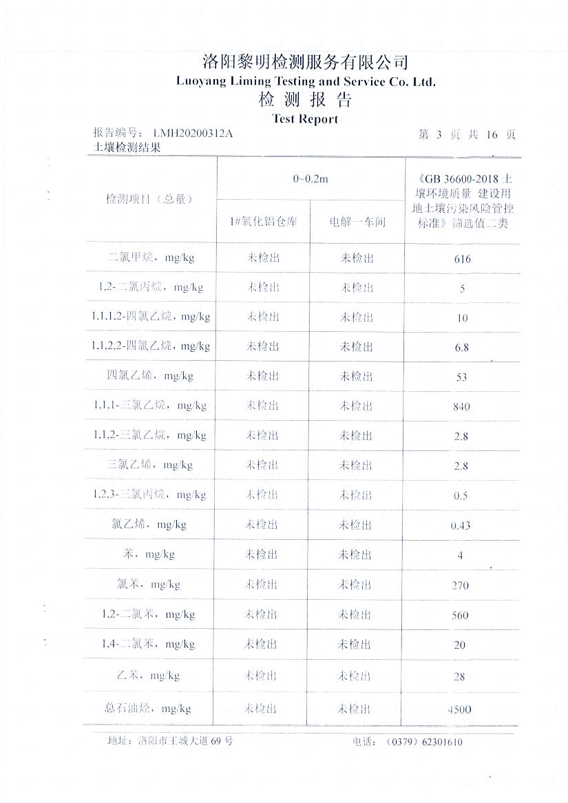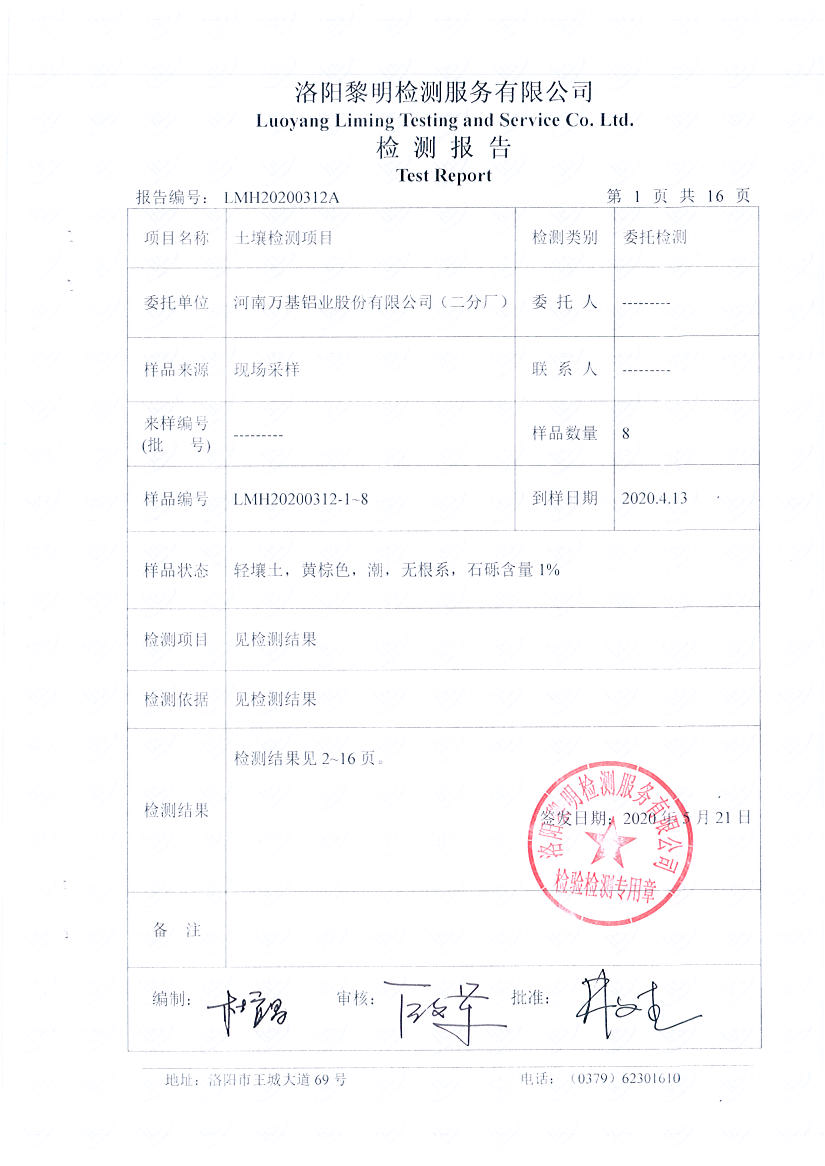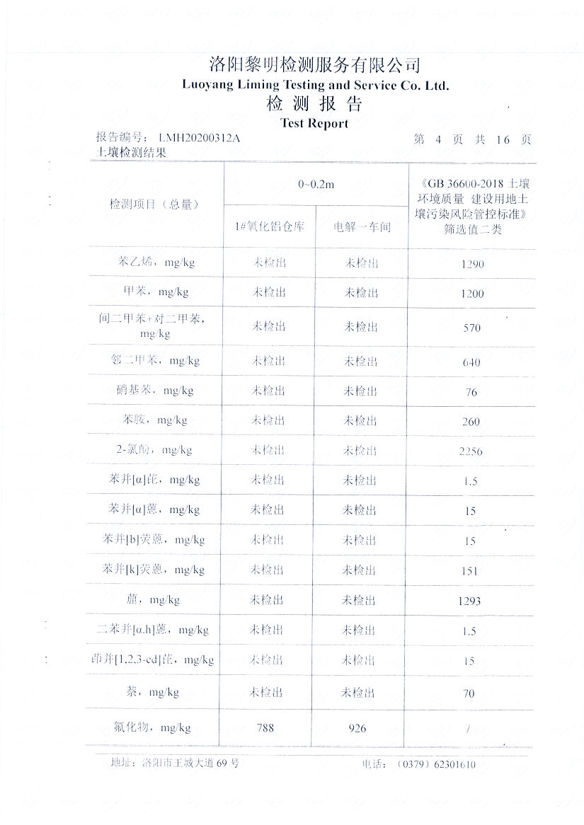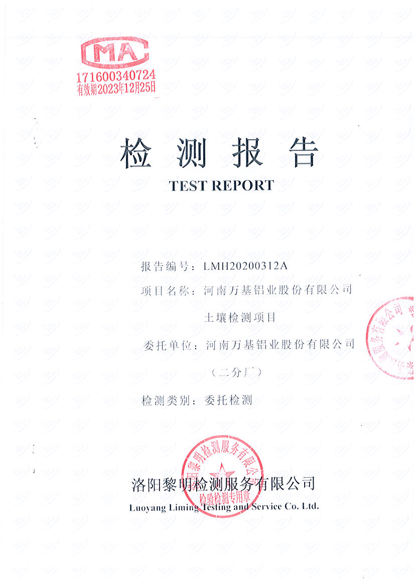 河南萬基鋁業(yè)股份有限公司(二分廠)2020土壤自行檢測報告