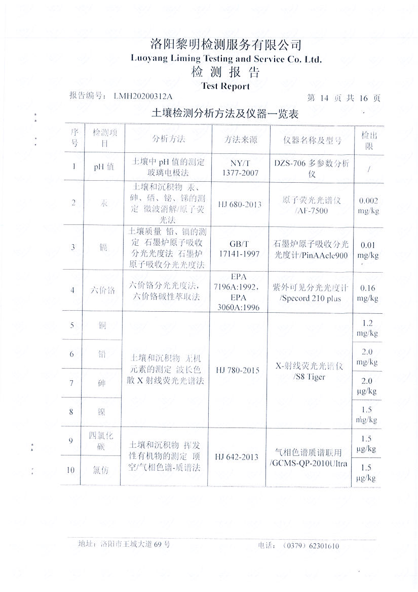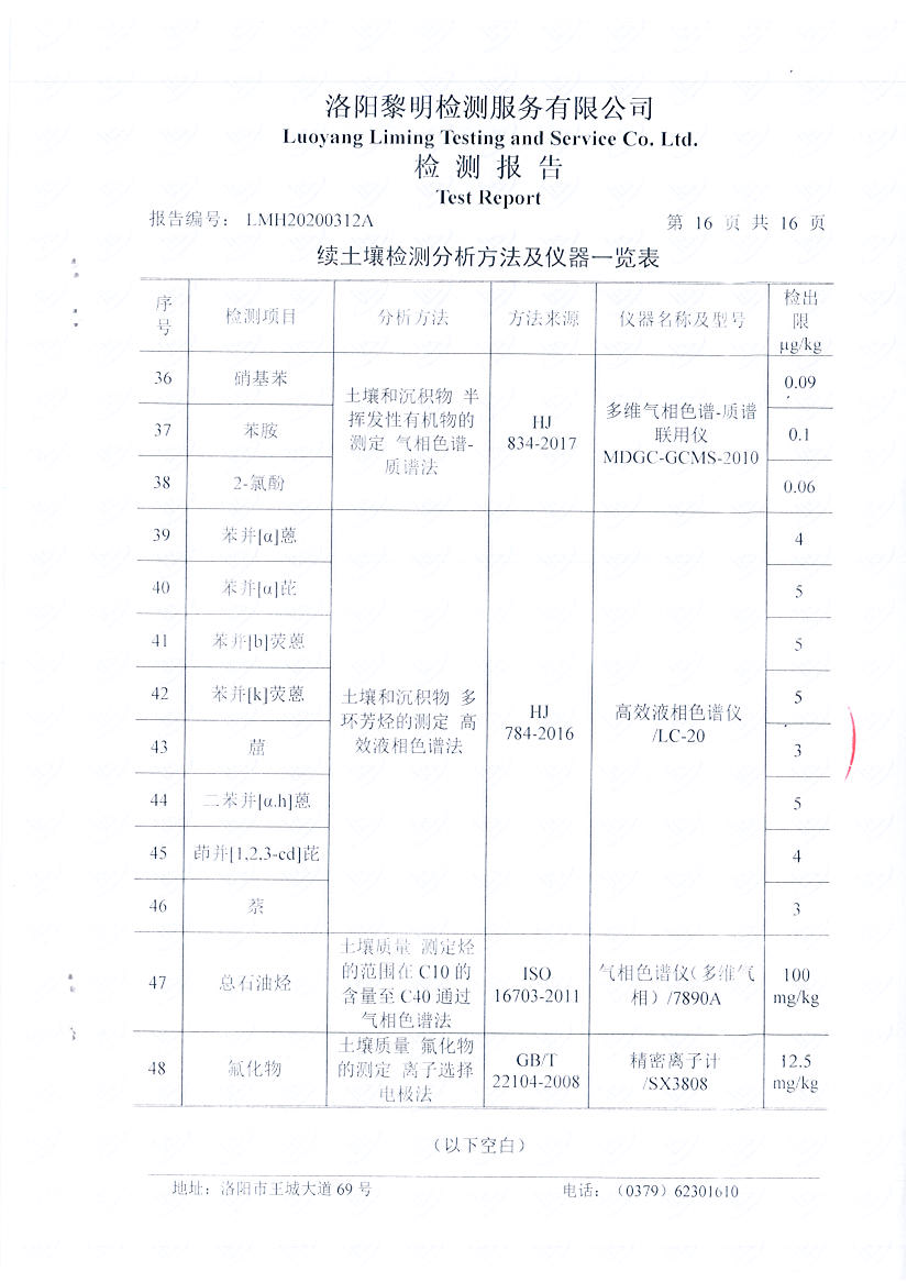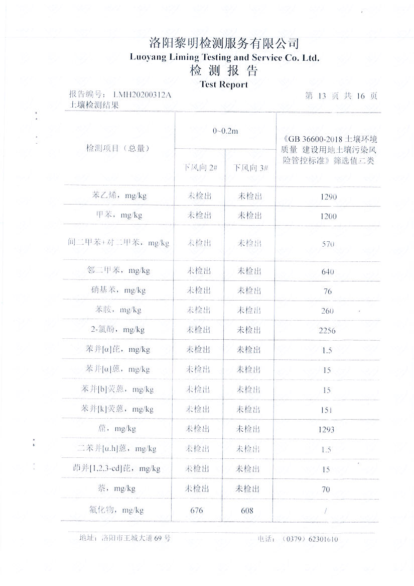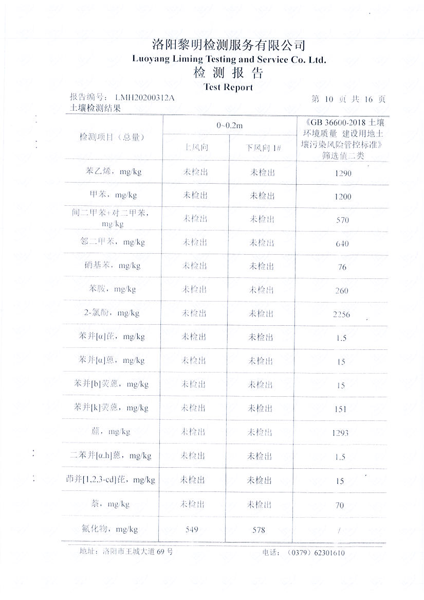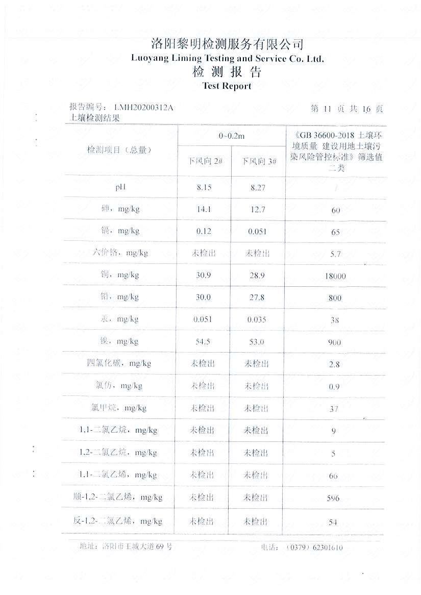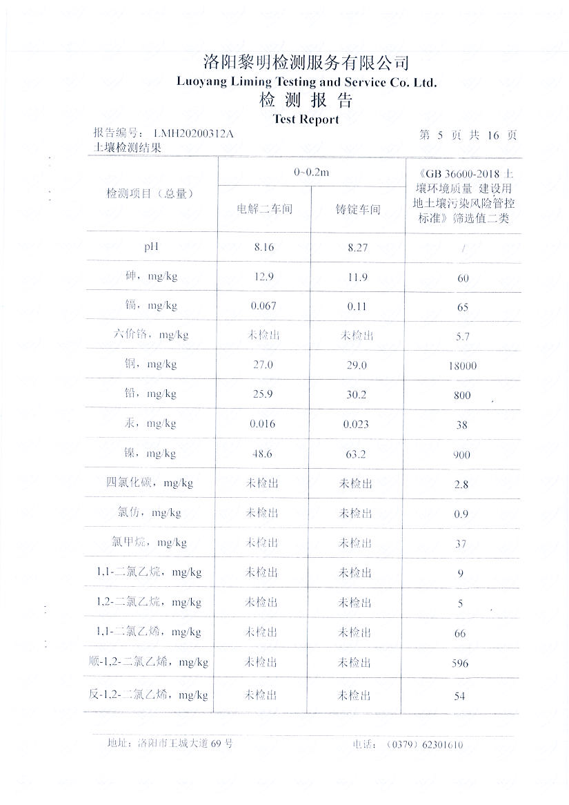 河南萬基鋁業(yè)股份有限公司(二分廠)2020土壤自行檢測報告