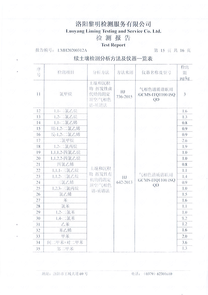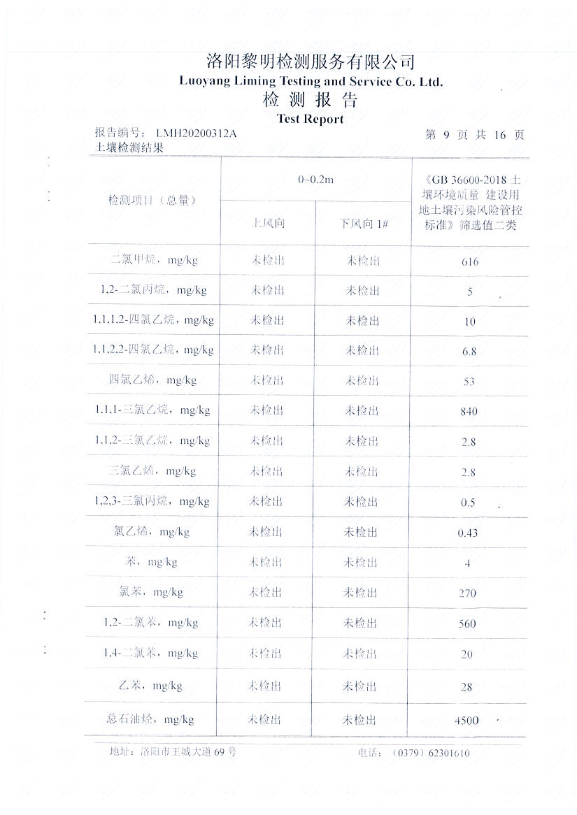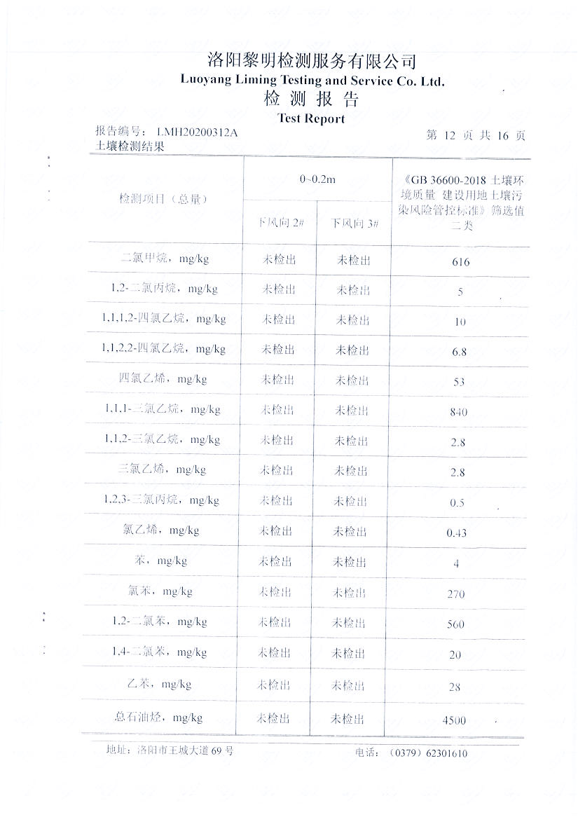 洛陽萬基鋁加工有限公司2019年土壤自行檢測方案